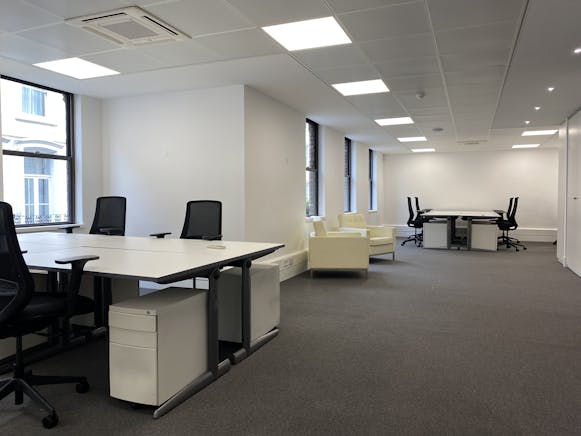 A fully fitted and furnished office suite in the heart of St James's. The office is situated on the 1st floor and are fully fitted to include 12 desks, 8 person meeting room, phone booth and a kitchenette.